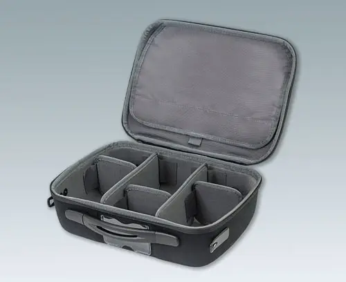 1 carry case with integrated compartments and Velcro fastening cover, 2 long partitions (vertical arrangement) and 3 short partitions (horizontal arrangement)