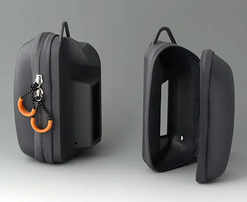 Specially designed for CARRYTEC S. Protects enclosure, cables and sensors. Consists of a moulded plastic part and hard-wearing textile fabric, with a practical zip fastener for fast access. Integrated recesses in the sides of the enclosure for connecting instruments, which are then ready for immediate use. Easy to attach to the screwed connection in the enclosure. Eyelet on the top for carrying with the shoulder strap (separate article, see Accessories).