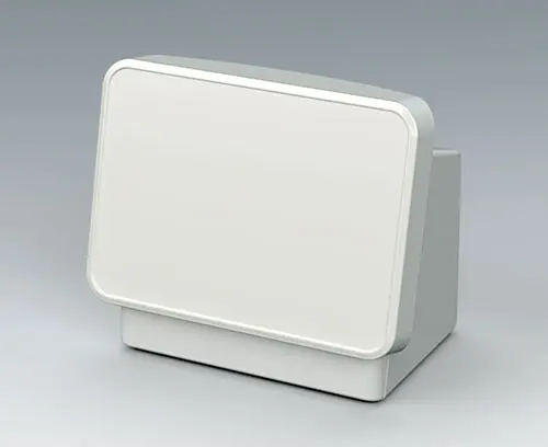 Order with COMMUNITEC S basic housing. Features a recessed area for protecting membrane keypads and integrating large-format displays up to 11.5" (29 cm), with a flat area below for front-mounted control elements and connectors. Includes integrated fastening pillars for PCBs or mounting plates. The operating panel is installed from the rear.