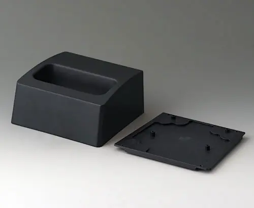 DATEC-COMPACT M 2-part compact hand-held enclosure with an ergonomic, robust design. Secure grip through finger recess in the bottom part. Recessed user area to protect the operating elements. Attachment domes for PCBs and components in the top and bottom parts.