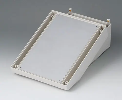 DATEC-TERMINAL M, Vers. III Basic enclosure with terminal compartment. Ergonomically inclined operating area can be used with a cover and the MH front panel, separate articles.