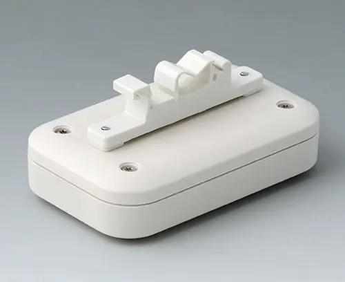 EVOTEC 100, Vers. I 2-part plastic enclosure with flat top part, height 31. Robust design with tongue and groove connection. Case assembled with Torx drive stainless steel screws. Fastening pillars for PCBs and components in the top and bottom parts.