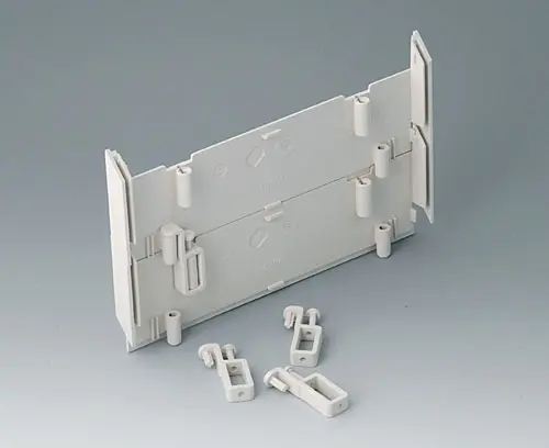 L-shells E 220, without holes Component as separate parts: L-shells without hole. Ideal for the instalation of Eurocards 100 x 220 mm or 100 x 160 mm. Side trims 220 (sep. article) necessary for covering the screw fixing.