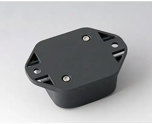2-part plastic enclosure with high top part. Bottom part with integrated flanges for fast wall mounting or for mounting on rails and tube profiles or on masts. Robust design with proven tongue and groove connection. Assembled with Torx stainless steel screws. Fixing supports for PCBs and components in the top and bottom parts. Fastening on the supports is by means of hot caulking.
