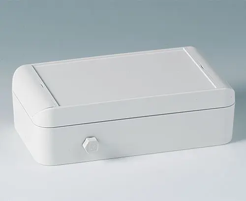 Case shell 160, with tongue Case shell with thread and fixing towers as separate part.´Alternative use either as top or bottom part. Screw fixing outside of the sealing area. Recess of approx. 0.8 mm for the use of membrane keyboards. Each 1 part with tongue and 1 part with groove needed for 1 case.
