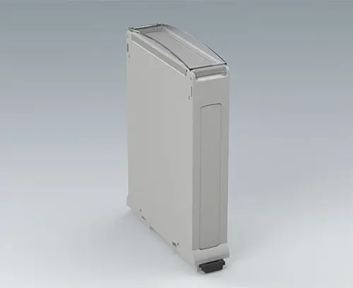 RAILTEC BP, M22, with ventilation slots DIN rail enclosure with 2 pluggable side panels with ventilation slots for increased heat dissipation and front panel. Simple and quick assembly by locking onto DIN rails EN 60715 TH35. The panel version provides simple and flexible installation of the electronics as well as efficient, screwless case assembly.