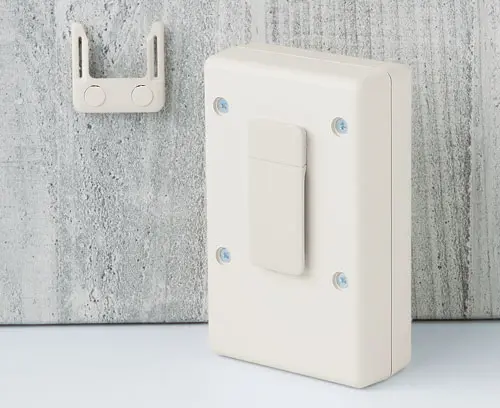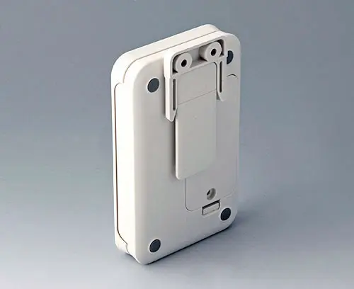 Serves as a clip and / or wall suspension. Assembly oriented towards the length or width (size S towards the length only). For a battery exchange, the clip can easily be removed. Two mounting holes diameter 4.2 mm necessary.