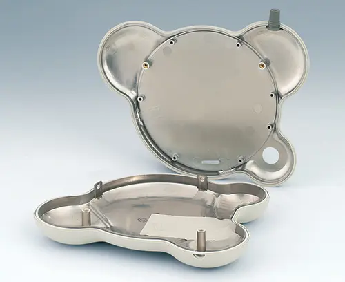 To ensure safe use of the equipment and to protect the installed electronics from external interference, the plastic enclosures have been coated with aluminium on the inside. In the vicinity of the capacitive keypad, there are partial cutouts in the aluminium coating. With a coating thickness of 2.5 µm, this makes a shielding effect of 30 to 40 dB possible in the frequency range of 30 to 1000 MHz.