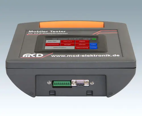Analog as well as PWM-controlled assemblies and components can be tested directly in the vehicle with this mobile testing device. In addition, its flexible programming makes it possible to carry out functional testing on different actuators or valves. The device automatically detects the contacted DUT and selects the required testing program. An easy-to-read 4.3'' LCD touchpanel with a Pass/Fail monitor and a graphic user interface guides the operator and displays the measurement data. Various testing cables for diagnosing control units for automotive or medical applications are available for the mobile testing device.