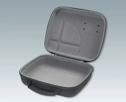 Reliable and fashionable transportation solution with a carrying handle. The carry case can be fitted with your logo or nameplate for your company branding (logo window, zipper).