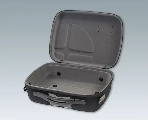 Reliable and fashionable transportation solution with a carrying handle as well as 2 eyelets for using the shoulder strap (accessory). The carry case can be fitted with your logo or nameplate for your company branding (logo window, zipper).