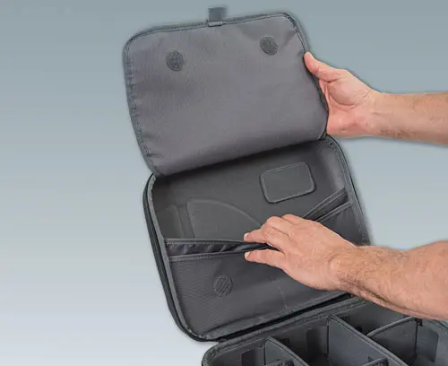 1 carry case with integrated compartments and Velcro fastening cover, 2 long partitions (vertical arrangement) and 3 short partitions (horizontal arrangement)