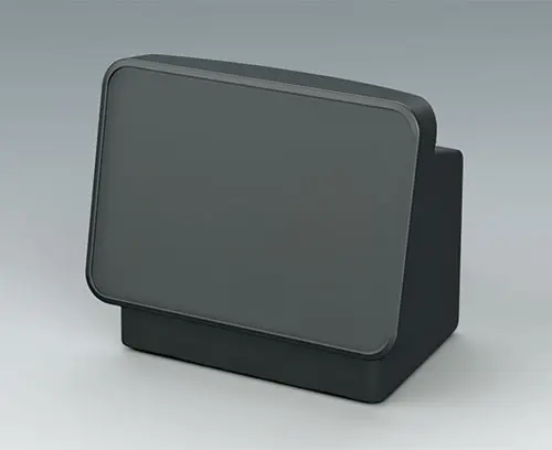 Order with COMMUNITEC S basic housing. Features a recessed area for protecting membrane keypads and integrating large-format displays up to 11.5" (29 cm), with a flat area below for front-mounted control elements and connectors. Includes integrated fastening pillars for PCBs or mounting plates. The operating panel is installed from the rear.