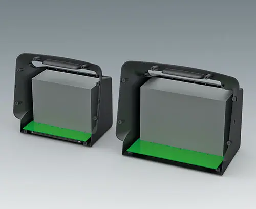 Basic housing with plenty of space for large-volume electronic assemblies. Large side areas are easy to machine, for example for connector interfaces, ventilation slots to increase heat dissipation, and more. The rear of the housing includes a recessed area to protect installed sockets, plugs, and power supply cables; an additional recess is provided for product labels. Integrated fastening pillars are provided for PCBs or mounting plates.