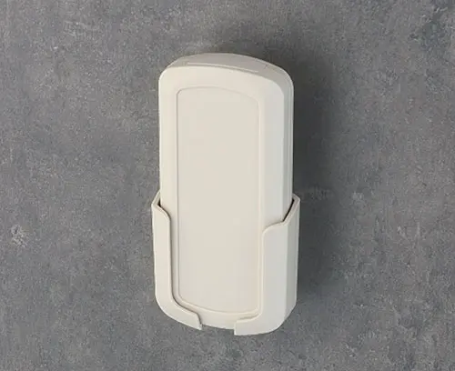 Special holder for CONNECT M for the secure storage of wired and wireless mobile devices. With large recess for plug-in connections. The holder is mounted on the wall or on other components with standard screws with head diameters of 5.5 to 7 mm.