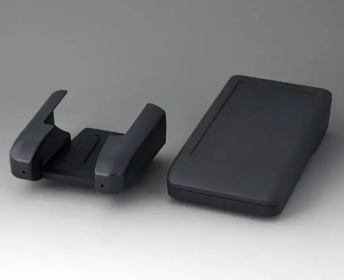 DATEC-COMPACT M 2-part compact hand-held enclosure with an ergonomic, robust design. Secure grip through finger recess in the bottom part. Recessed user area to protect the operating elements. Attachment domes for PCBs and components in the top and bottom parts.
