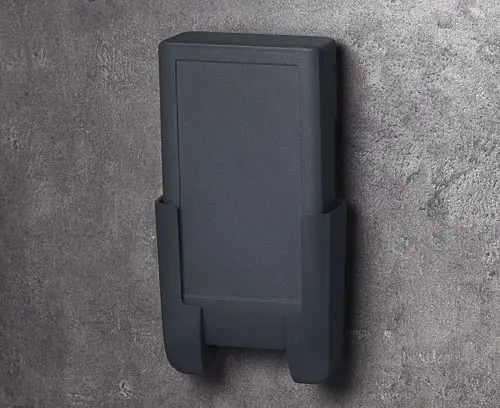 Special holder for DATEC-COMPACT M for the secure storage of wired and wireless mobile devices. With large recess for plug-in connections. The holder is mounted on the wall or on other components with standard screws with head diameters of 5.5 to 7 mm.