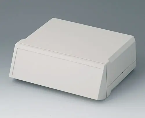 MOTEC M, flat/high Desk top case with flat base and high top part. Screwless mounting of the shells. Front and rear part open. Screw towers for PCBs and vertical guides for mounting panels. Front and rear panels to slide in as accessory.