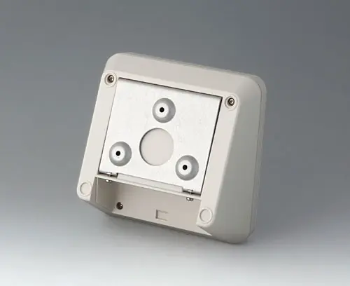 PROTEC 140, Vers. II Modern three piece plastic enclosure with an ergonomically inclined operating panel. The snap-on cover included in the supply makes it possible to close the deep recessed interface area at the rear both visually and/or to install additional electronics in a separate area. Fastening pillars for PCBs and components in the top and bottom parts. Wall suspension element and sealing (to raise the protection class up to IP 65) included in the range of accessories. Hidden stainless steel assembly screws with secure Torx heads. Can also be used outdoors thanks to the high-quality material and the robust design.
