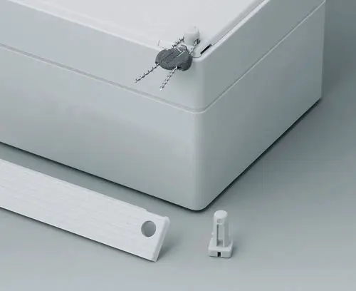 ROBUST-BOX WIDTH 120, Vers, II Robust plastic enclosure, ideal for electrical and electronic applications. Case shells either usable as top or base part. Each case part contains threads and fixing towers. Screw fixing outside of the sealing area. Recess of approx. 0.8 mm for use of membrane keyboards.