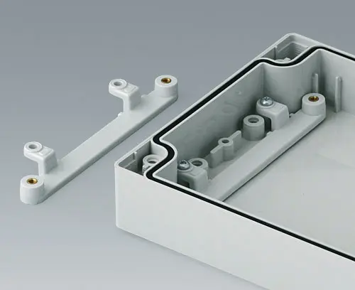 ROBUST-BOX WIDTH 120, Vers. II Robust plastic enclosure, ideal for electrical and electronic applications. Case shells either usable as top or base part. Each case part contains threads and fixing towers. Screw fixing outside of the sealing area. Recess of approx. 0.8 mm for use of membrane keyboards.