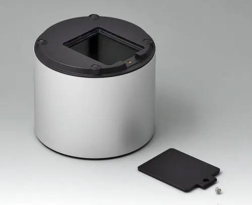 4-part enclosure for many different applications. Sturdy frame made of aluminium, glass bead-blasted and anodised. Plastic parts made of ASA+PC-FR with high UV protection and high flame resistance. Attachment domes for PCBs and components in the top and bottom parts. Top part with recessed surface to protect the membrane keyboard. Bottom part with opening and screw-down cover: practical for the use of a battery compartment or for access to the interior, e.g. for a memory card or batteries that are mounted directly on the PCB. Battery compartment kit 3 x AA with contact springs, battery clips, button cell holder and wall mounting option as accessories.