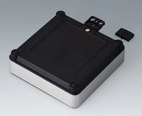 SYNERGY R120 4-part enclosure for many different applications. Sturdy frame made of aluminium, glass bead-blasted and anodised. Plastic parts made of ASA+PC-FR with high UV protection and high flame resistance. Attachment domes for PCBs and components in the top and bottom parts. Top part with recessed surface to protect the membrane keyboard. Bottom part with opening and screw-down cover: practical for the use of a battery compartment or for access to the interior, e.g. for a memory card or batteries that are mounted directly on the PCB. Battery compartment kit 3 x AA with contact springs, battery clips, button cell holder and wall mounting option as accessories.